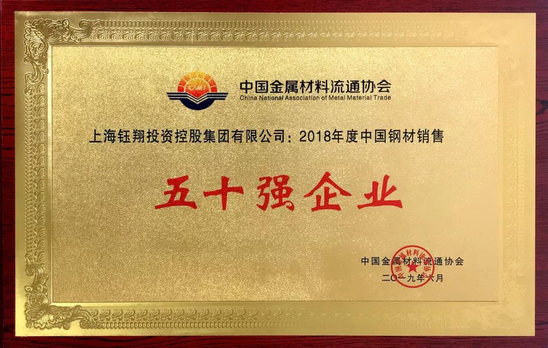 鈺翔控股集團榮獲中國金屬材料流通協會2018年度中國鋼材銷售50強、2018年度中國鋼鐵供應鏈建設示范企業兩項殊榮